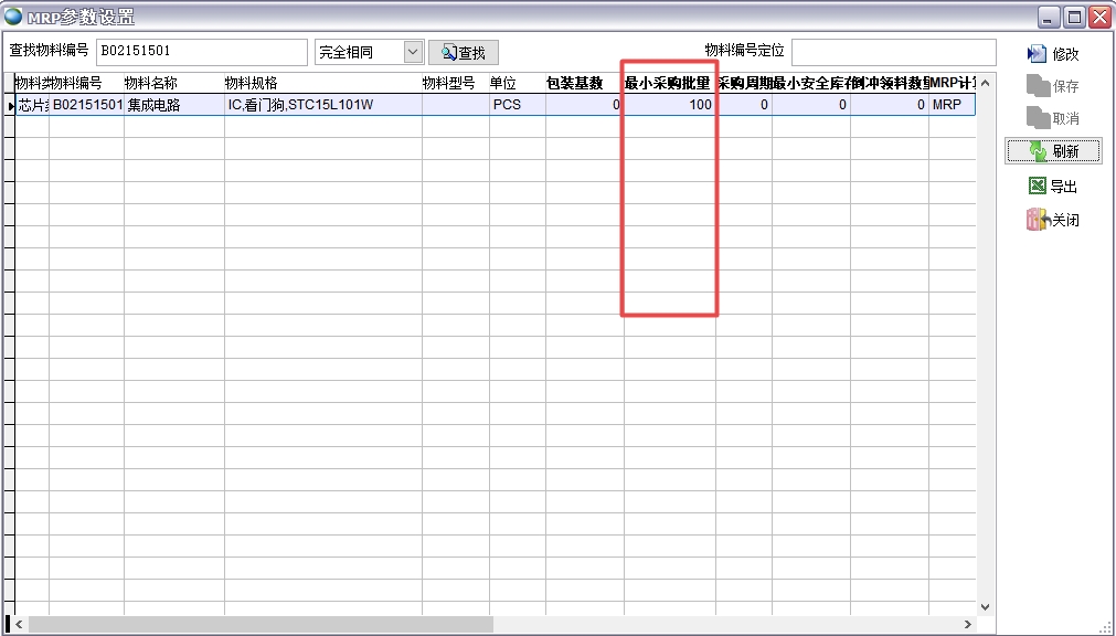 有些物料供應(yīng)商有最小起訂量要求的,可以設(shè)置最小采購量,設(shè)置后MRP計(jì)算結(jié)果會自動將欠料數(shù)大于等于最小采購量。