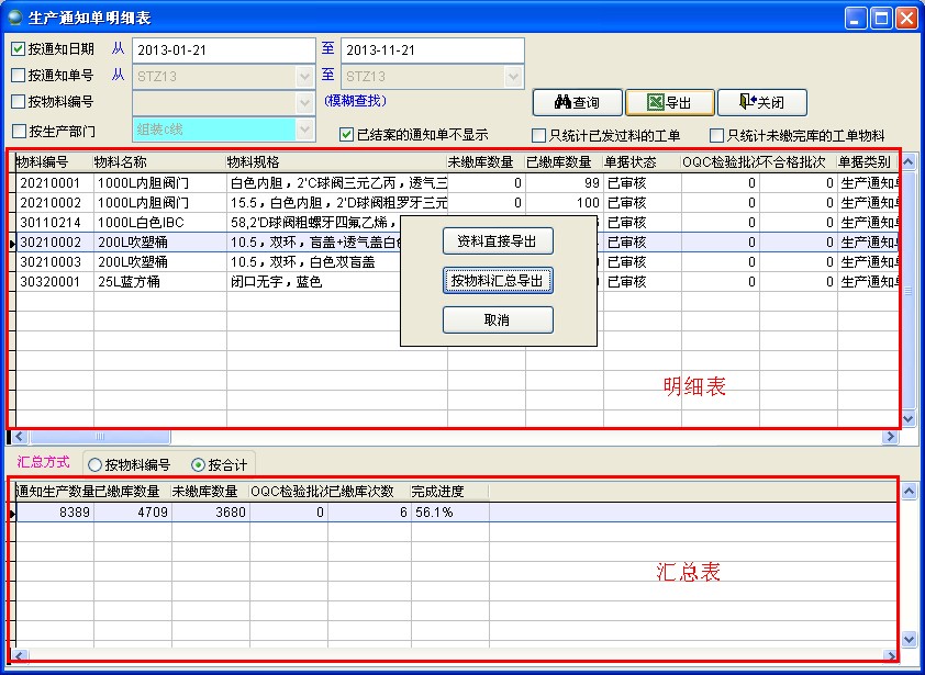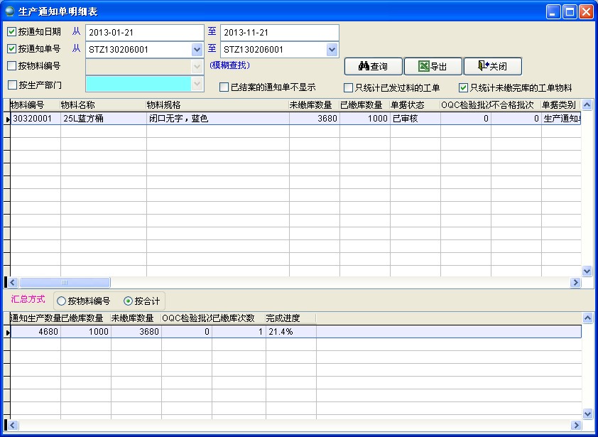 勾選此項(xiàng)后只顯示未結(jié)案的生產(chǎn)通知單