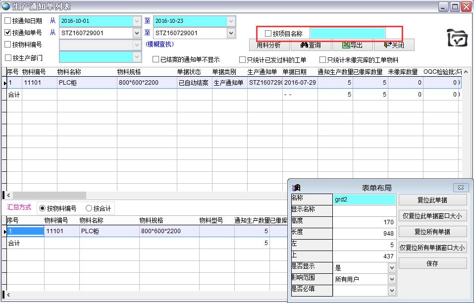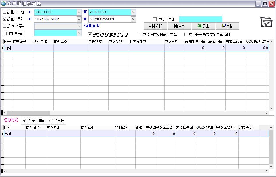 生產(chǎn)通知單列表會(huì)顯示所有符合搜索條件的生產(chǎn)通知單,并按要求進(jìn)行匯總。