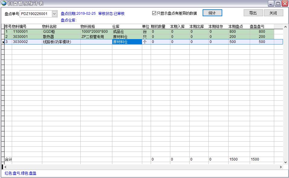 該統(tǒng)計(jì)表可以直觀的查看自盤單的盤盈盤虧情況(只限數(shù)量,不涉及金額)