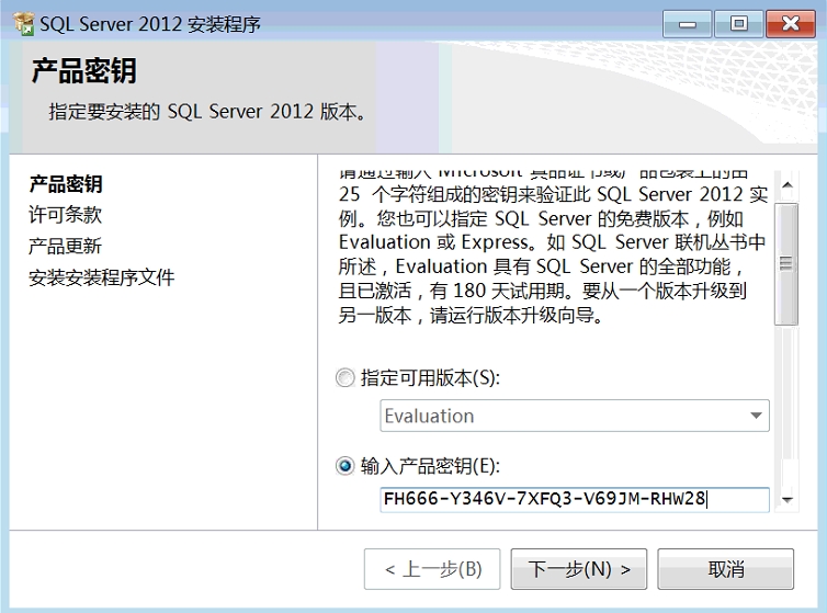 出現(xiàn)下圖:點擊輸入產(chǎn)品秘鑰:產(chǎn)品秘鑰下面我放幾個,建議使用企業(yè)核心版激活碼 也就是下面第一個 輸入之后點擊下一步