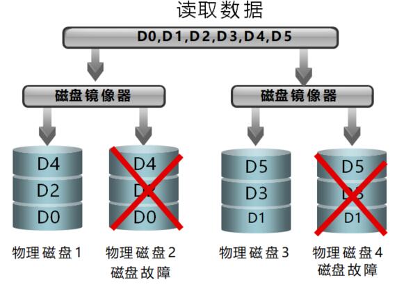 RAID 10是將鏡像和條帶進(jìn)行組合的RAID級(jí)別,先進(jìn)行RAID 1鏡像然后再做RAID 0。RAID 10也是一種應(yīng)用比較廣泛的RAID級(jí)別