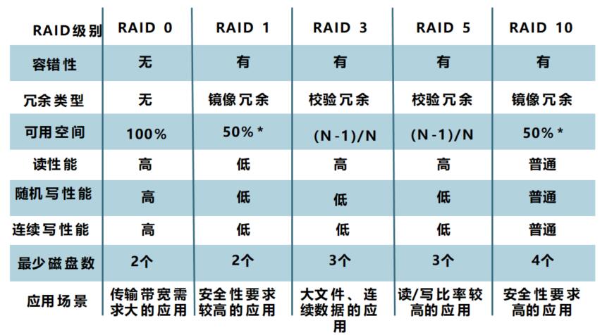 常見(jiàn)RAID級(jí)別的比較