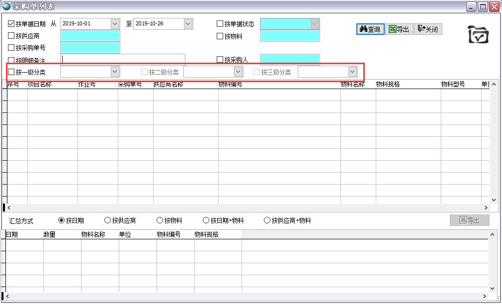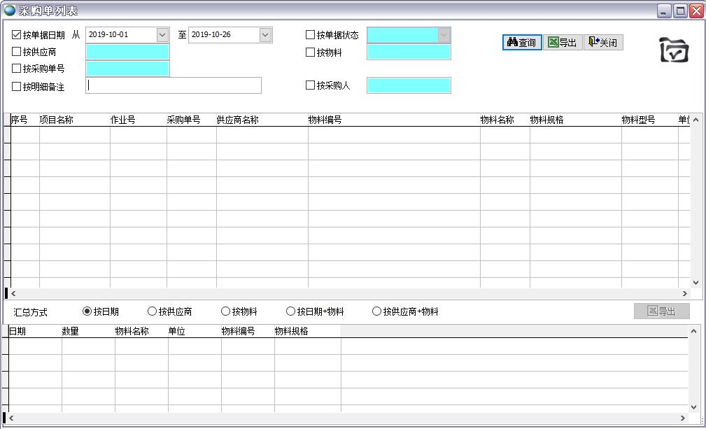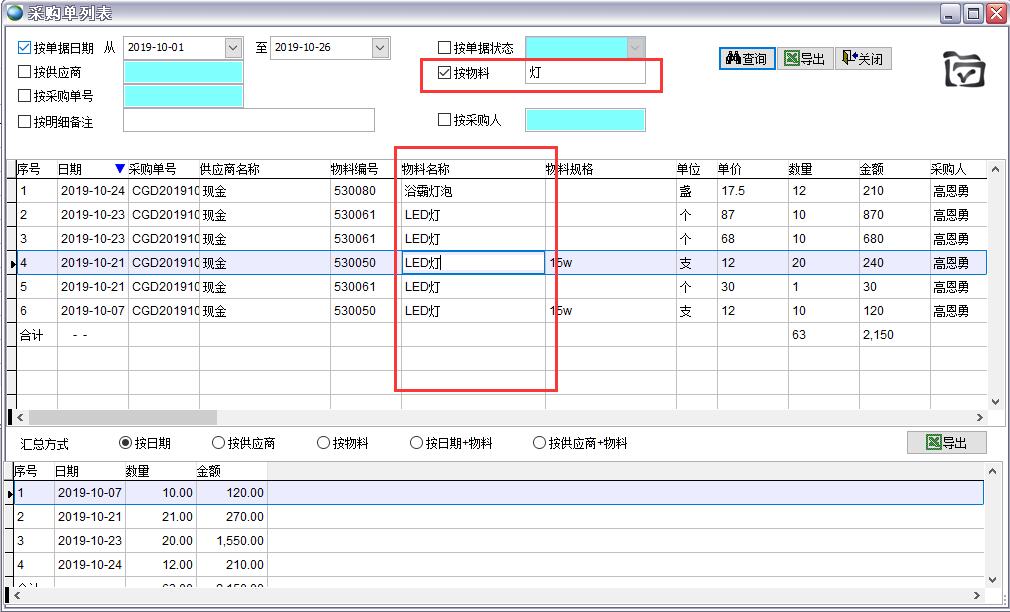 可以按物料編號、物料名稱、物料規(guī)格模糊查詢