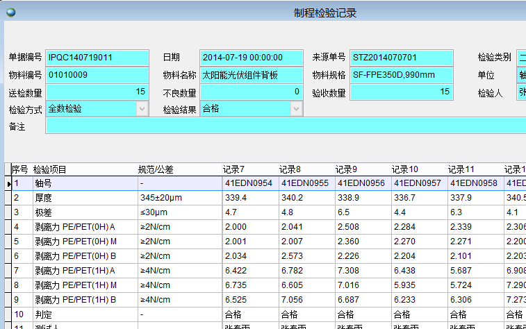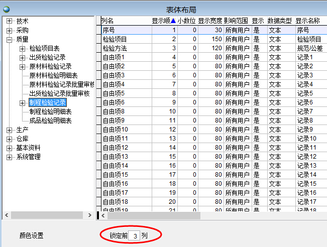 制程檢驗(yàn)記錄表的前3列不會(huì)滾動(dòng)