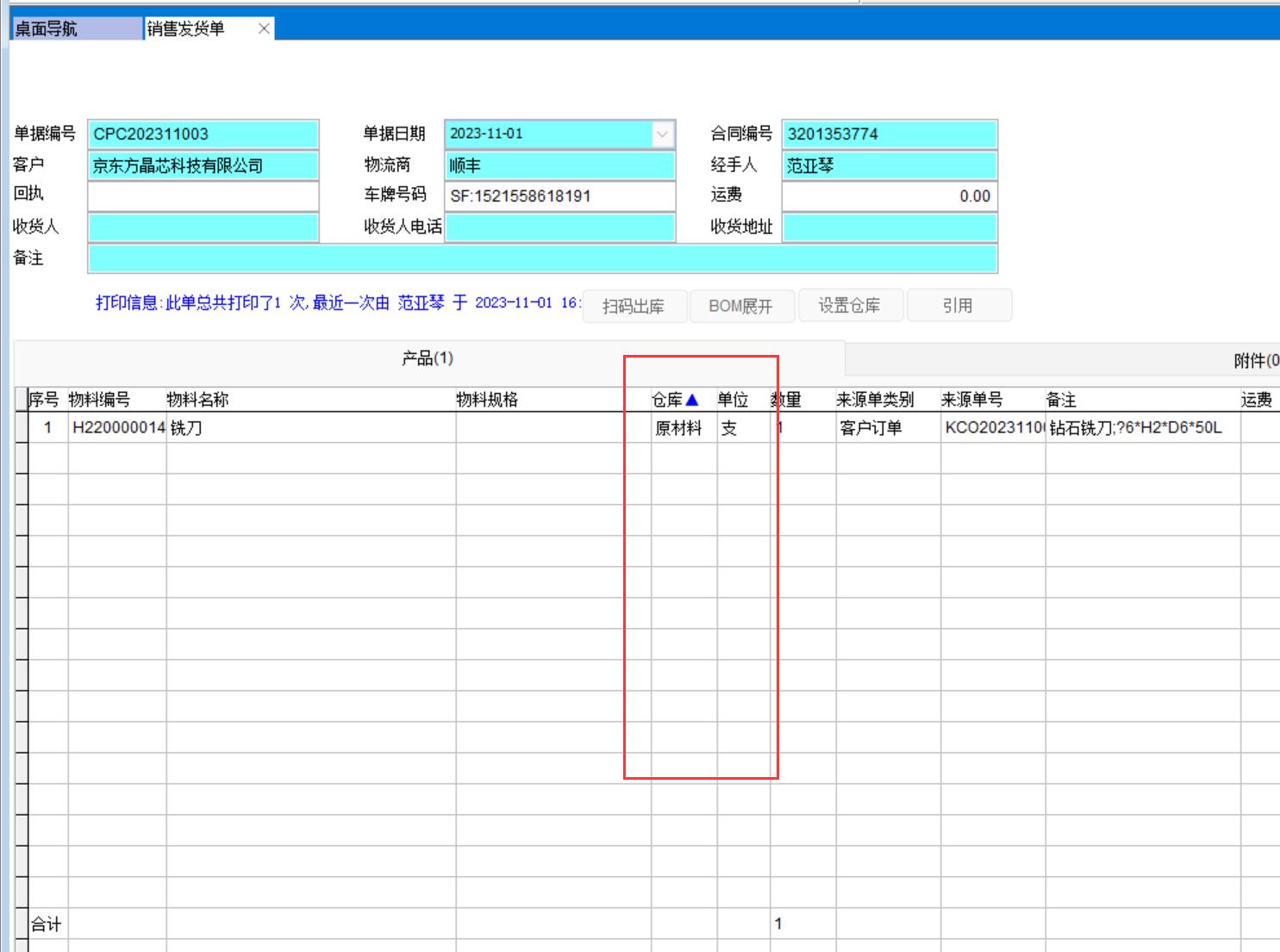 現(xiàn)在改變單位和倉庫的顯示順序,保存表體布局。然后重新打開銷售發(fā)貨單,此時(shí)倉庫的顯示在單位之前。