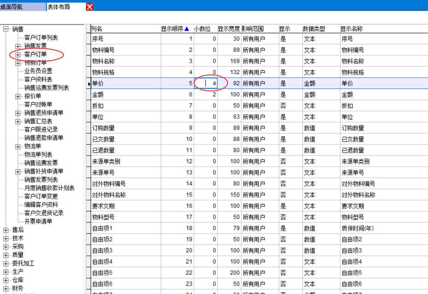 2、有很多數(shù)值型的字段不需要設(shè)置小數(shù)位,比如銷售發(fā)貨單的數(shù)量,有幾位小數(shù)就會(huì)自動(dòng)顯示幾位無需設(shè)置。