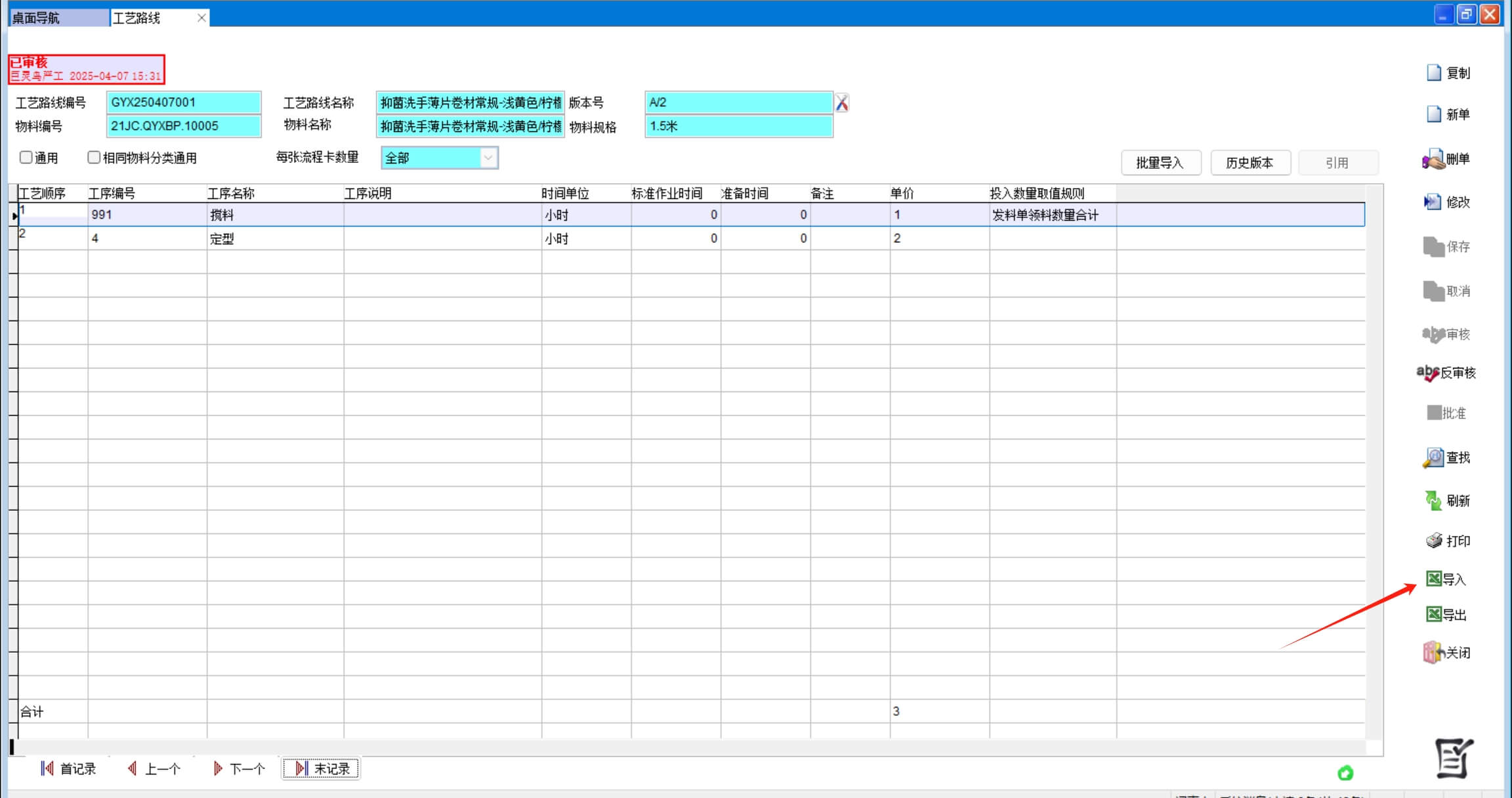 批量導入就是把所有工藝路線做成一個excel表格一次性導入。