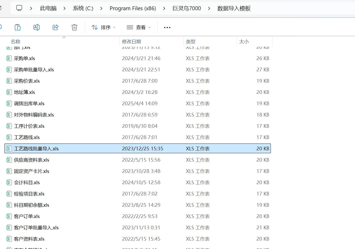 工藝路線可以從excel中導入,導入格式在數(shù)據(jù)導入模板目錄中