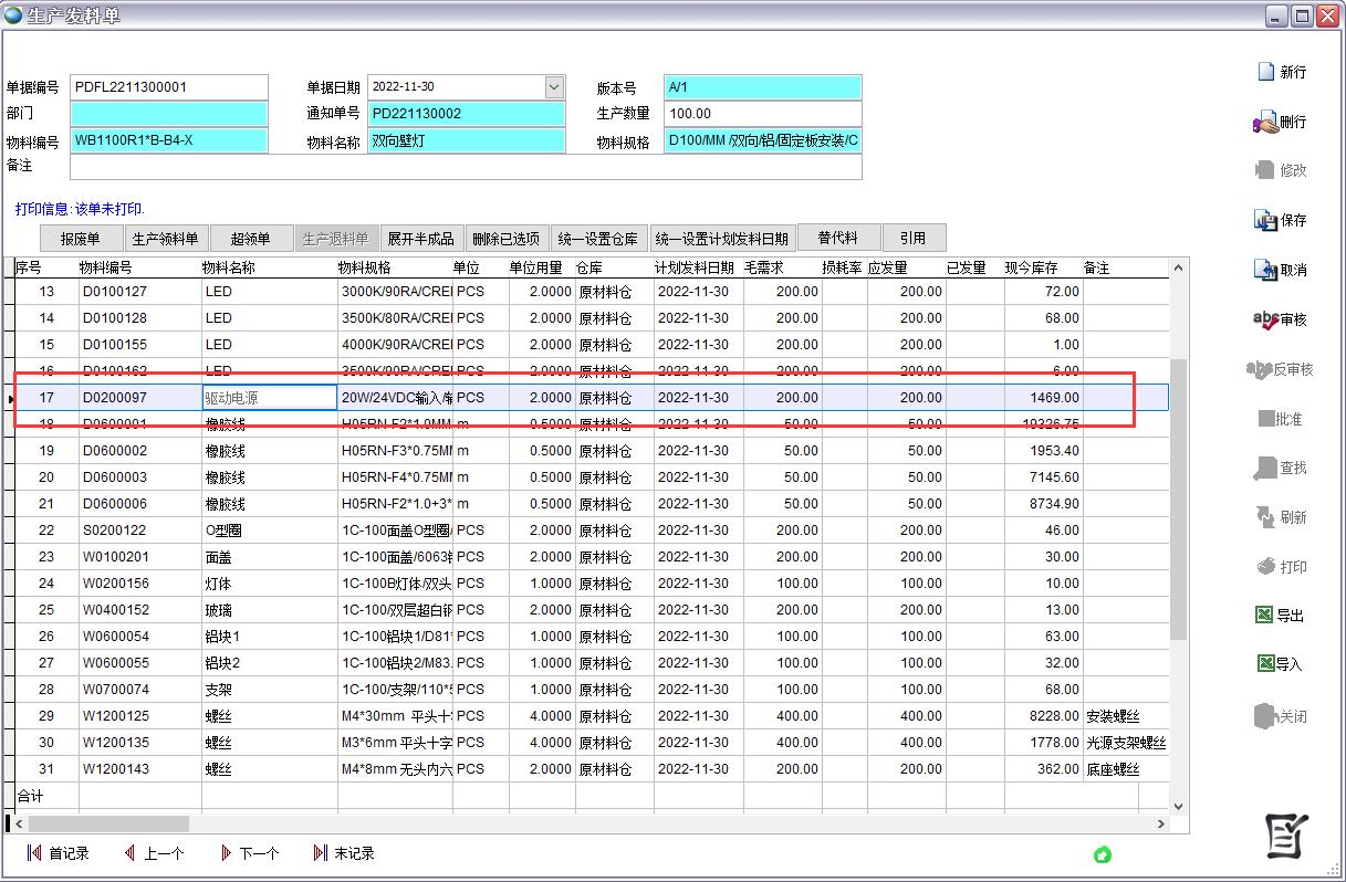 MRP計算就是根據(jù)生產(chǎn)發(fā)料單計算每個物料的欠料數(shù)的。