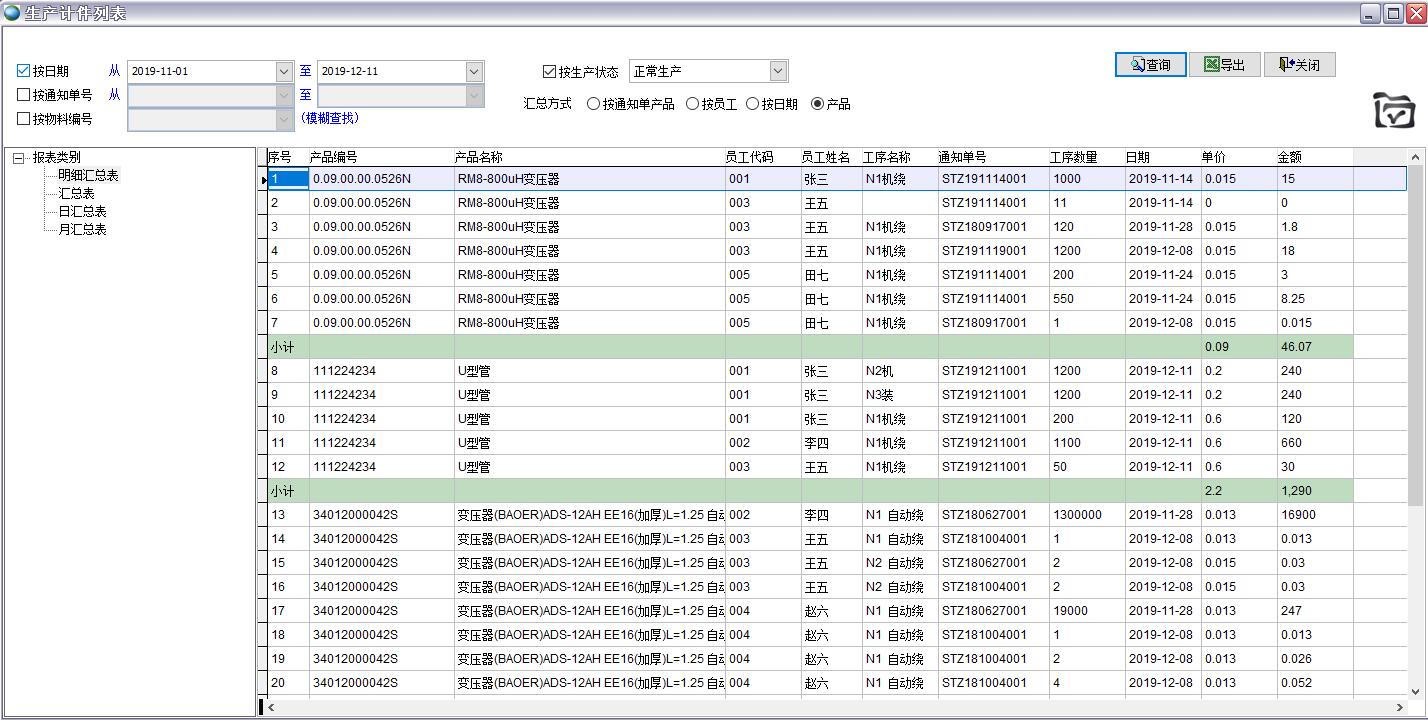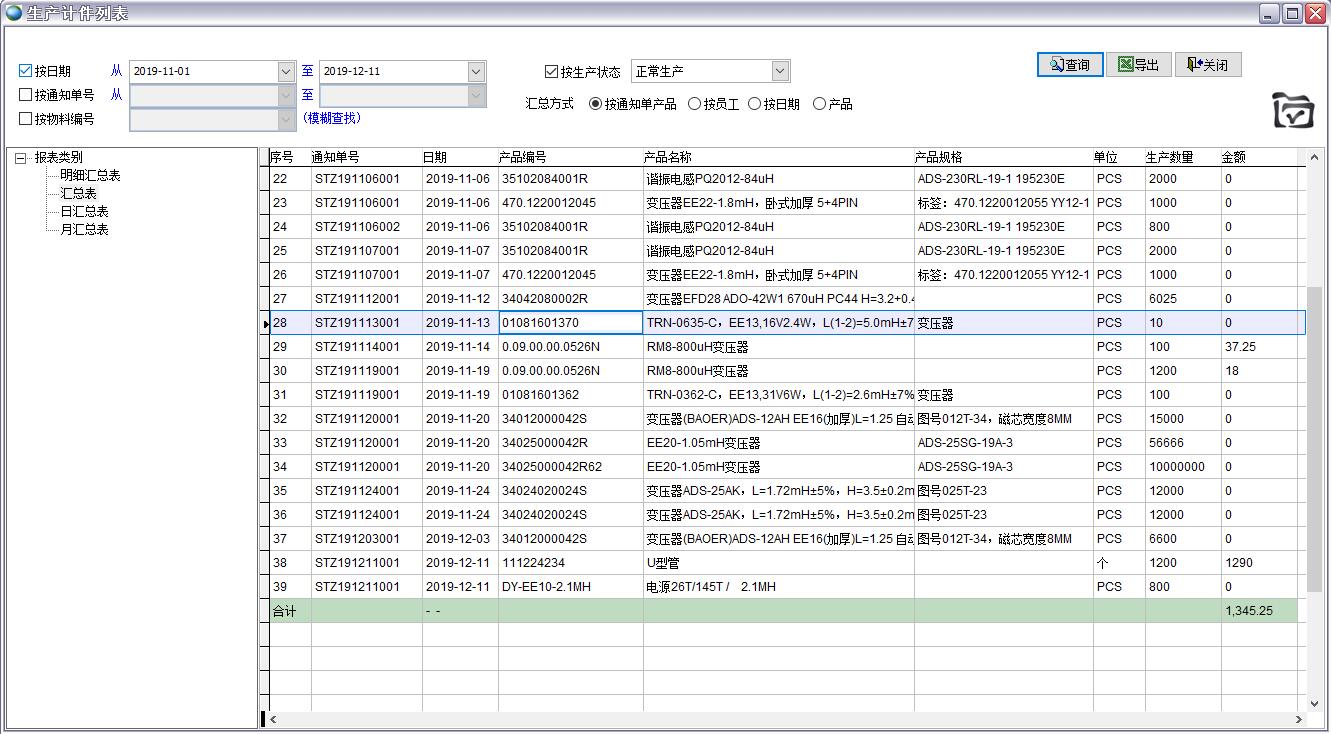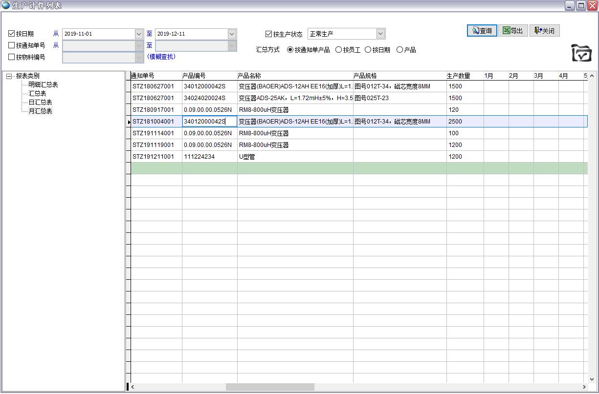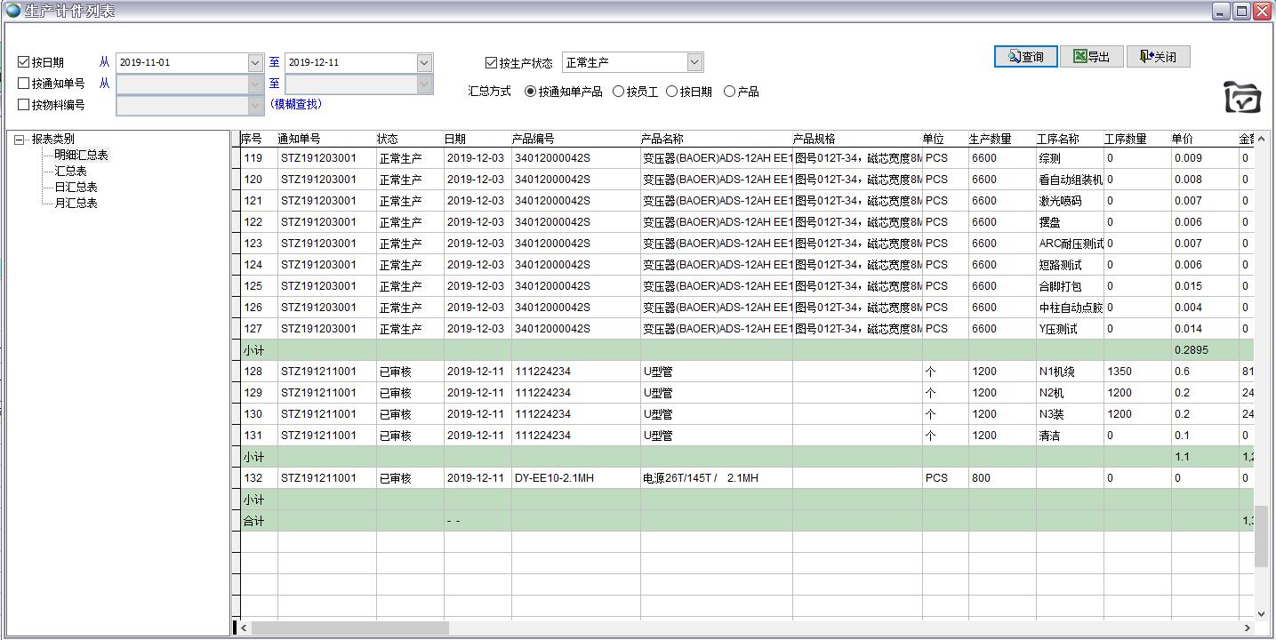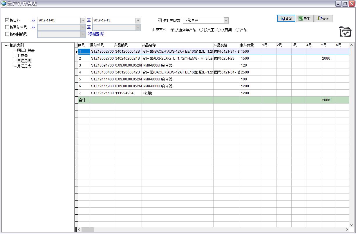 按生產(chǎn)通知單產(chǎn)品匯總