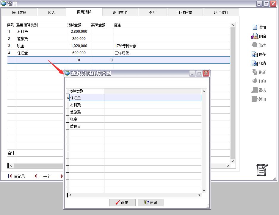 在合同費用預算類別中預先設置好預算類別,當實際費用支出后可以看到預算執(zhí)行情況
