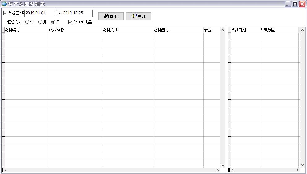 生產(chǎn)入庫明細表是對成品入庫單按年月、日進行的統(tǒng)計,可以查看某個產(chǎn)品按年、月、日匯總的入庫數(shù)量。