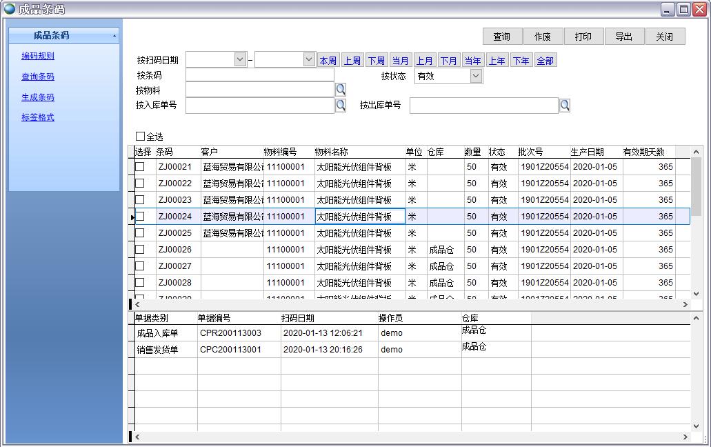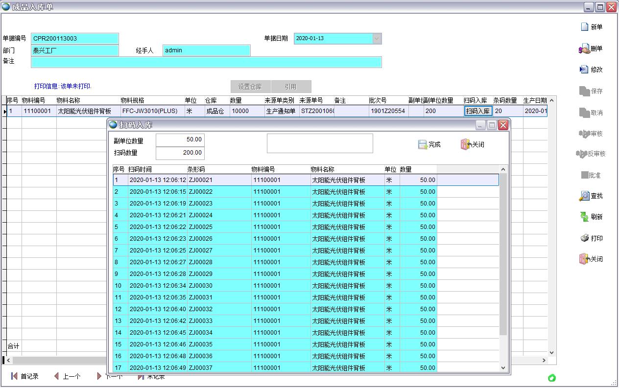 2、背板產(chǎn)品有嚴格的批次要求,同一批次產(chǎn)品所用到的主要材料氟膜、PE盡可能批次相同以避免產(chǎn)品出現(xiàn)色差等問題,因此對產(chǎn)成品和氟膜、PE等主材需要批次管理。