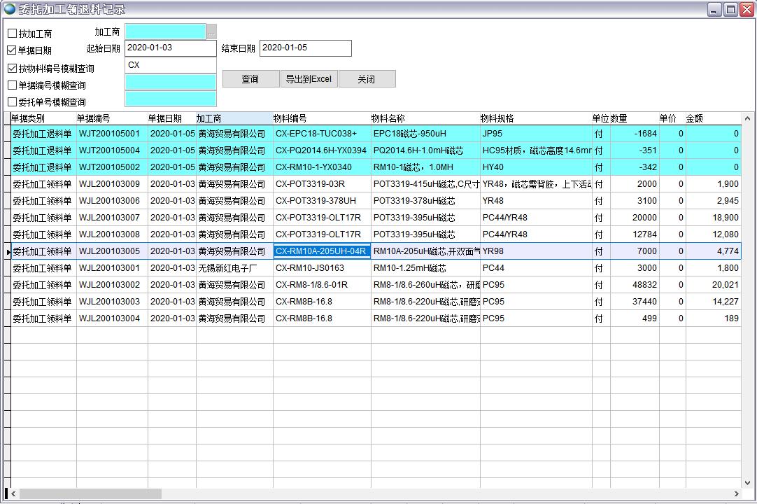 委托加工領(lǐng)退料記錄是委托加工領(lǐng)料單(發(fā)給委外加工商的材料)和委托加工退料單(從委外加工商退回的材料)的統(tǒng)計(jì)表,可以用作與供應(yīng)商(委外加工商)進(jìn)行對(duì)賬的依據(jù)。