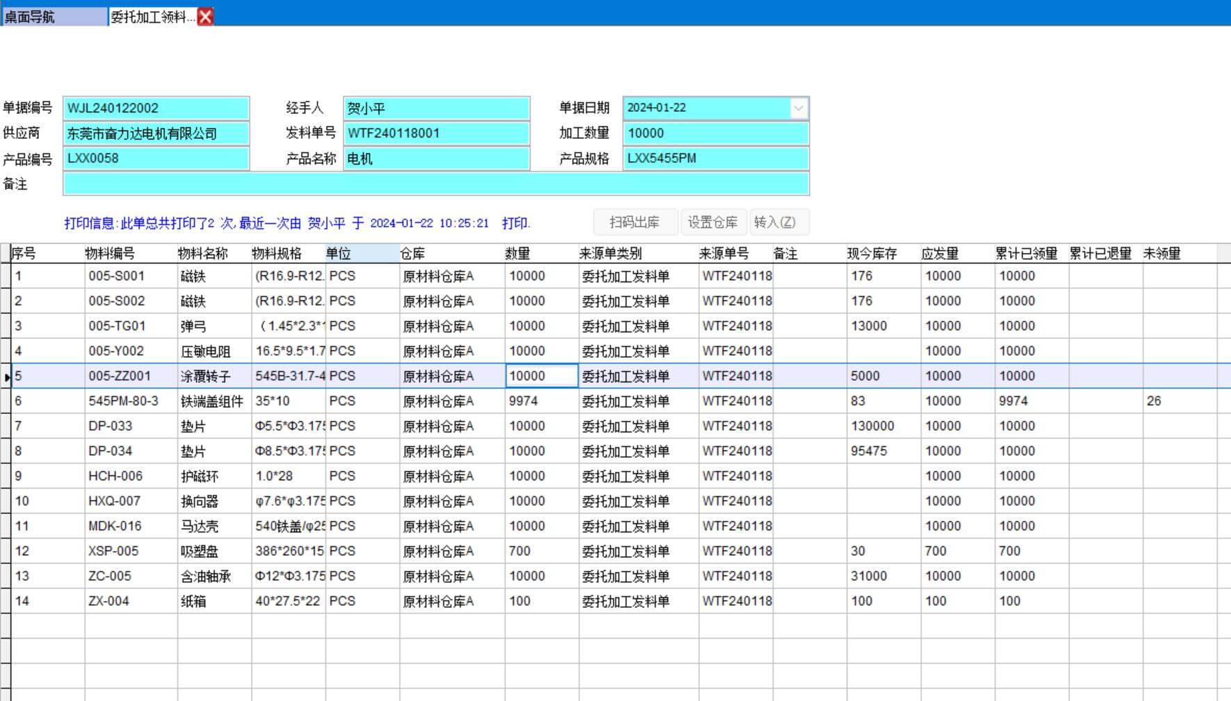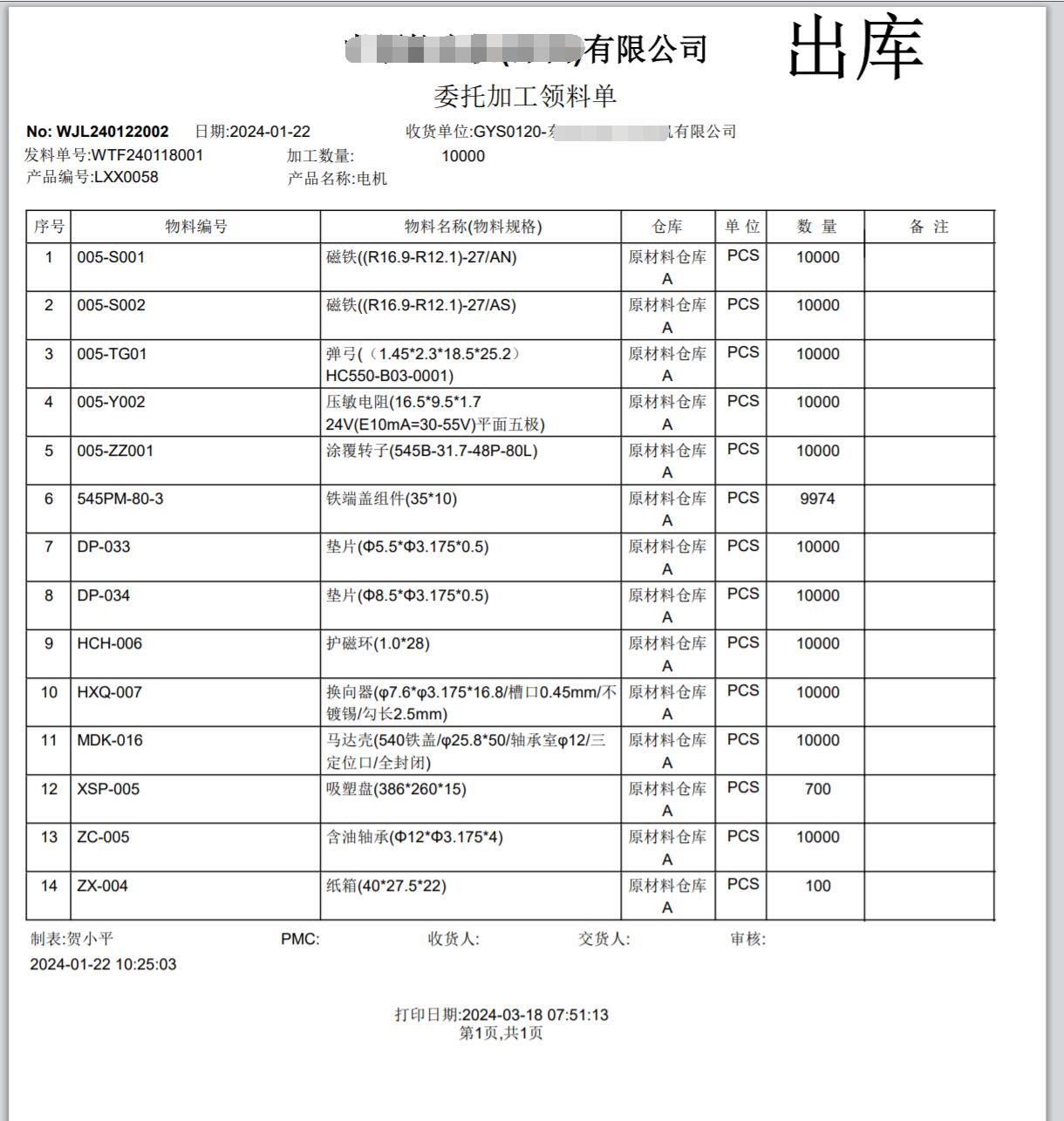 即材料出庫單,外發(fā)給加工商。通常會打印出來隨貨發(fā)給加工商