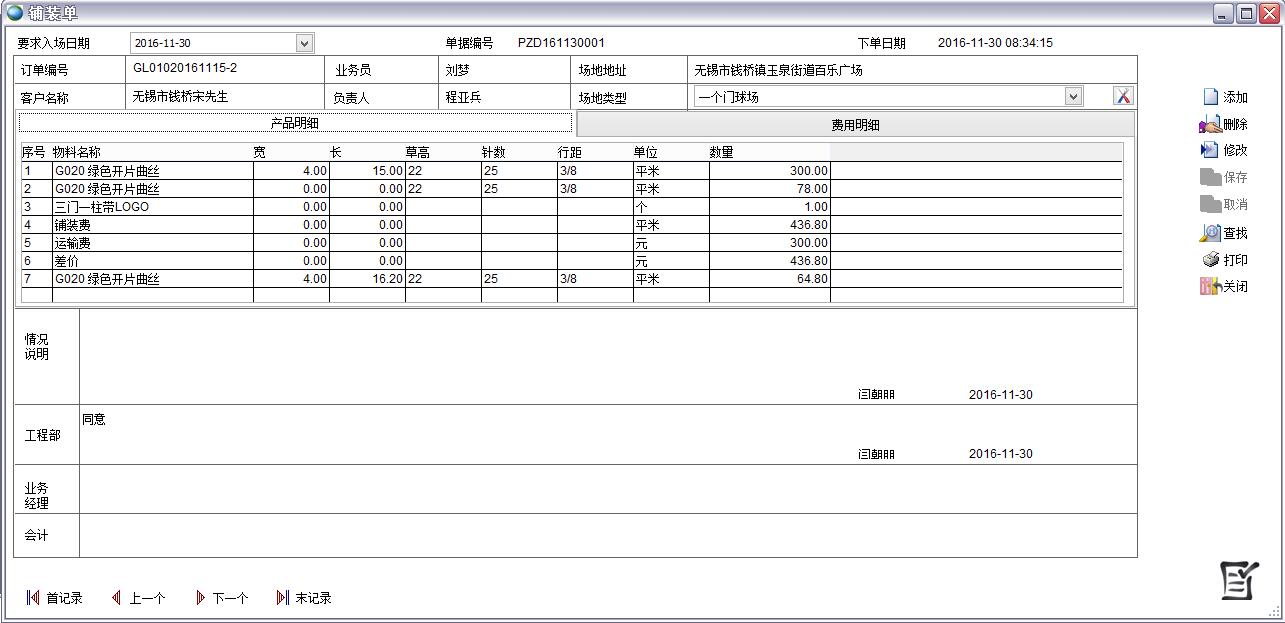 總體來說人造草坪有行業(yè)的特殊性,通用ERP無法滿足。