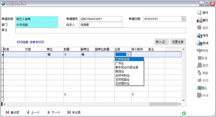 打開路徑:【主菜單】->【倉庫】->【入庫單】->【其它入庫單】
