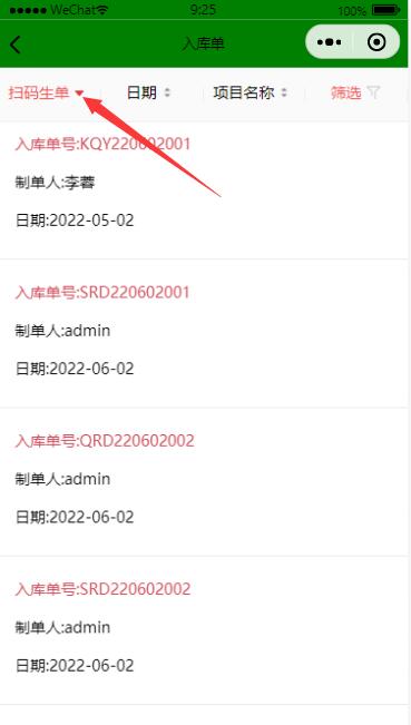 如果商品(包括產(chǎn)成品、半成品、原材料)使用了一維碼、二維碼、流程卡的,可以使用微信小程序掃碼生成入庫單,數(shù)據(jù)會(huì)反向同步到ERP。