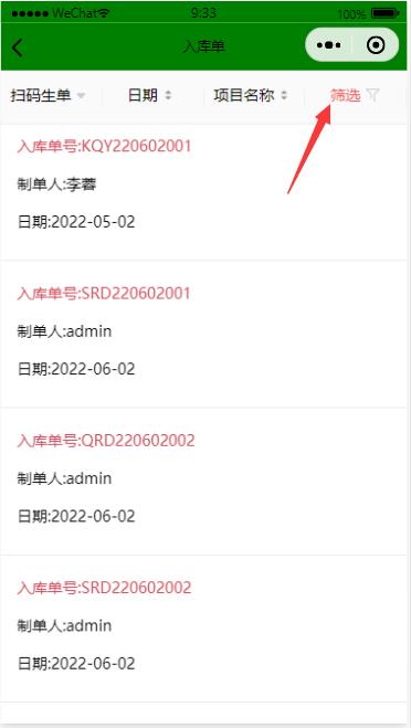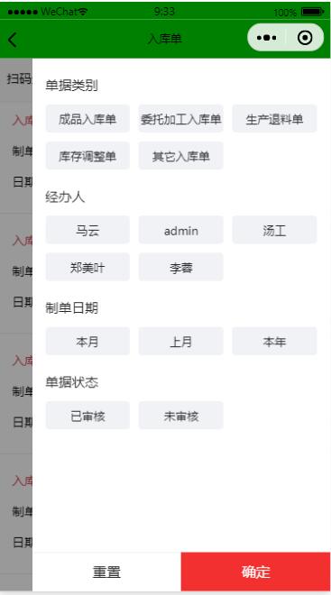入庫單對(duì)應(yīng)ERP中的各種入庫單,如采購入庫單、成品入庫單、其它入庫單、庫存調(diào)整單等,數(shù)據(jù)在ERP中錄入,同步到微信小程序端