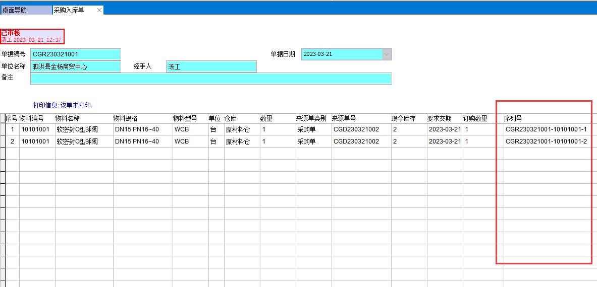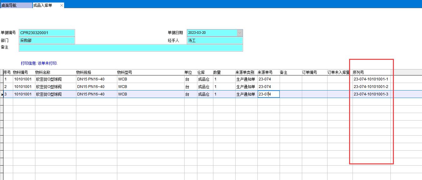所有相關(guān)單據(jù)的序列號都要顯示出來,如成品入庫單、銷售發(fā)貨單、采購入庫單、生產(chǎn)領(lǐng)料單等