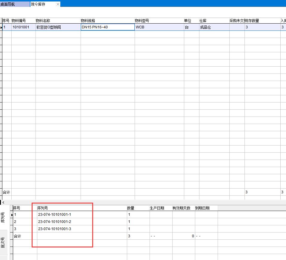 在物料編碼表中可以看到該分類所有物料都已經(jīng)啟用序列號管理