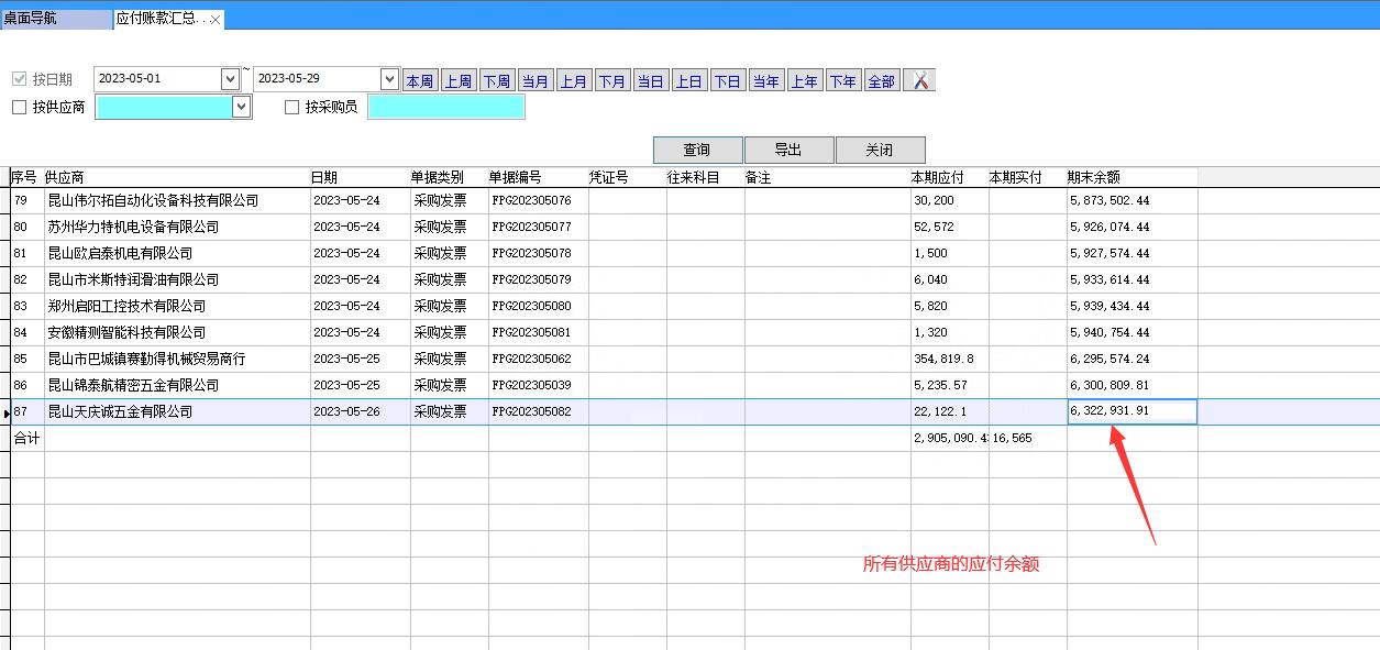 如果不是按單個(gè)供應(yīng)商查詢的話,這個(gè)期末余額就是本公司對所有供應(yīng)商的欠款余額