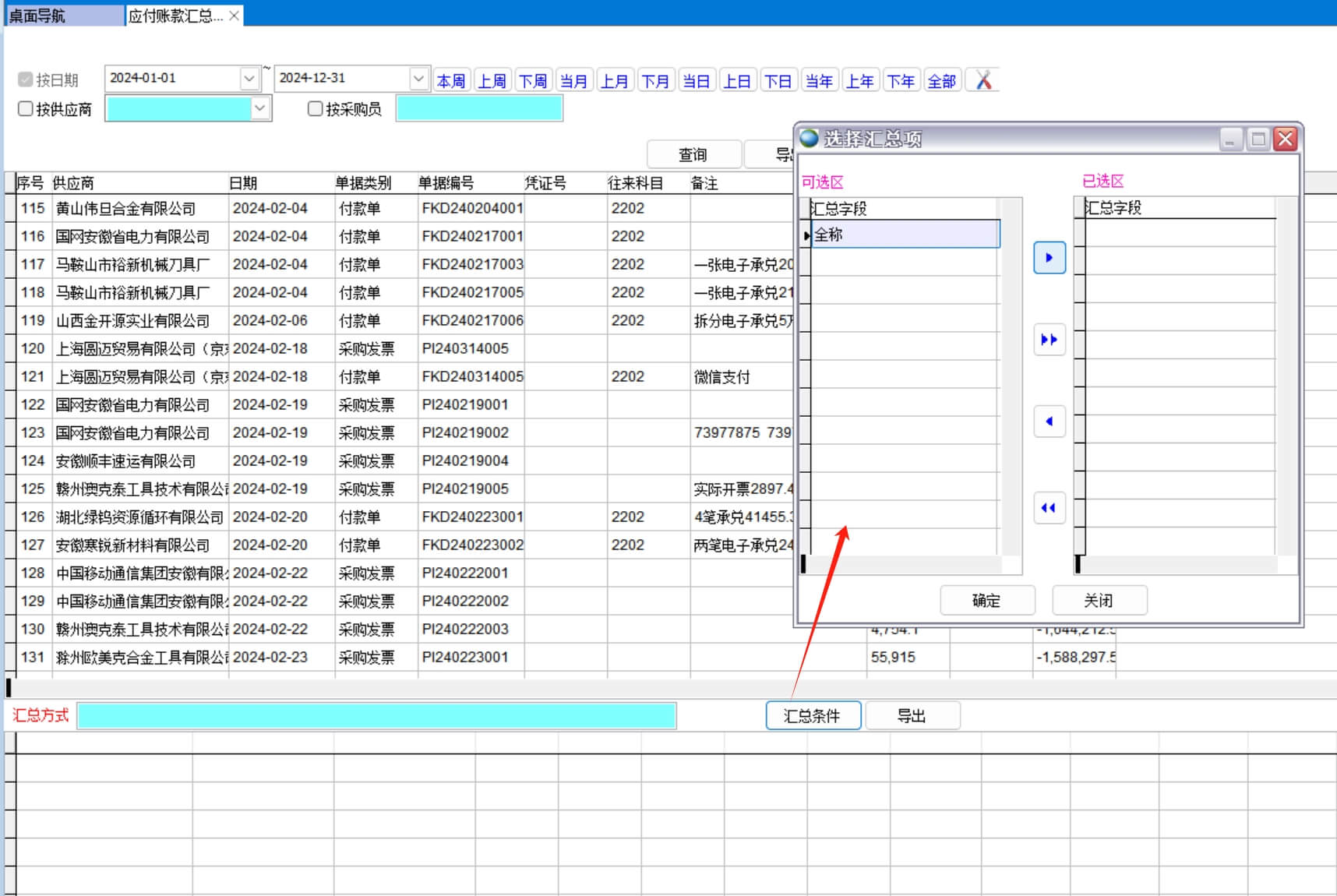 應(yīng)付賬款匯總表用于按不同的匯總維度,查詢應(yīng)付供應(yīng)商的款項(xiàng)及余額