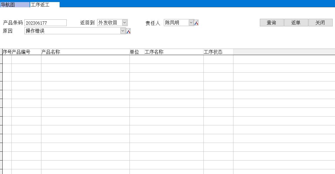 打開(kāi)路徑:【主菜單】-【制造】-【工廠工藝】-【工序返工記錄】