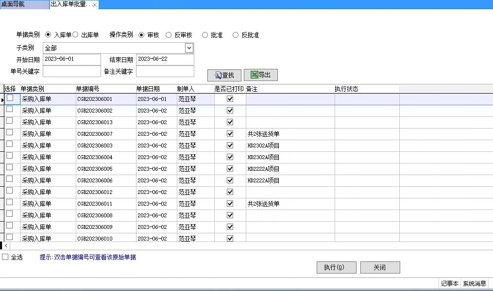 出入庫批量審核可以一次性對多個出庫單、入庫單進行審核、批準或反審核、反批準操作