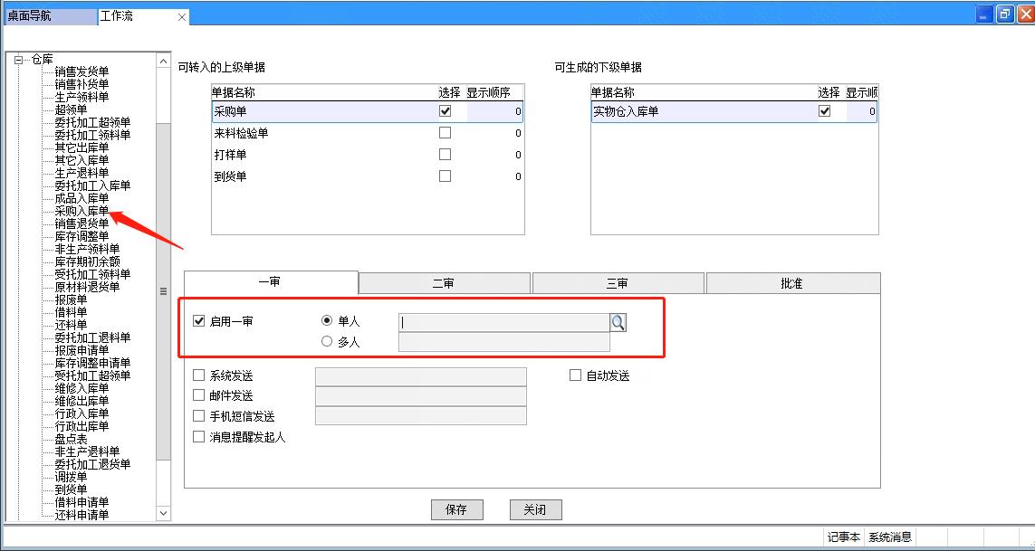 巨靈鳥ERP中默認的出入庫單據(jù)是沒有審核、批準的,需要在工作流中設(shè)置審批