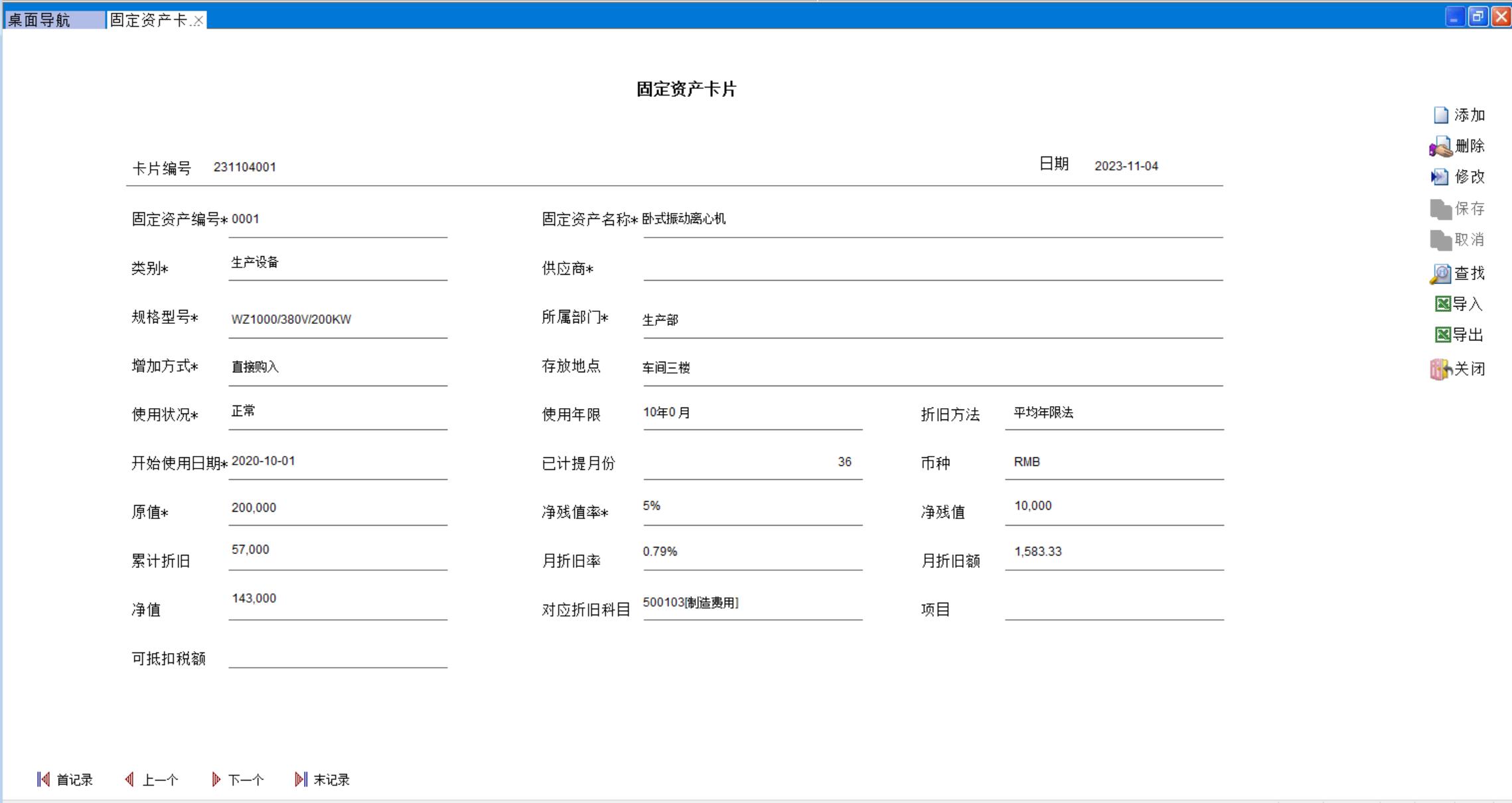 打開路徑:【主菜單】-【固定資產(chǎn)】-【固定資產(chǎn)卡片】