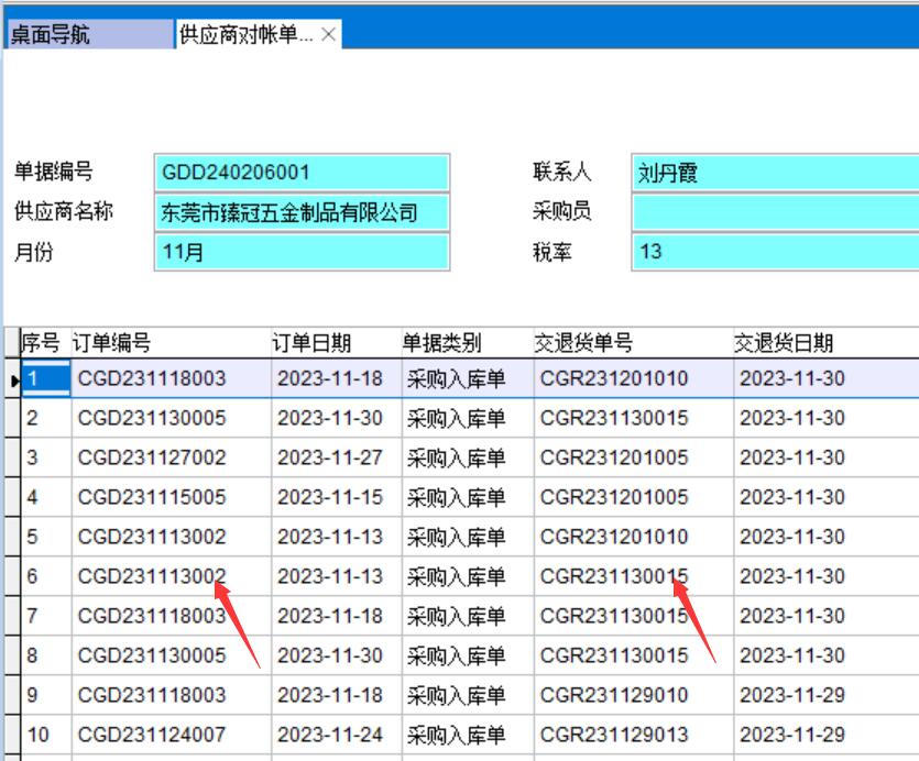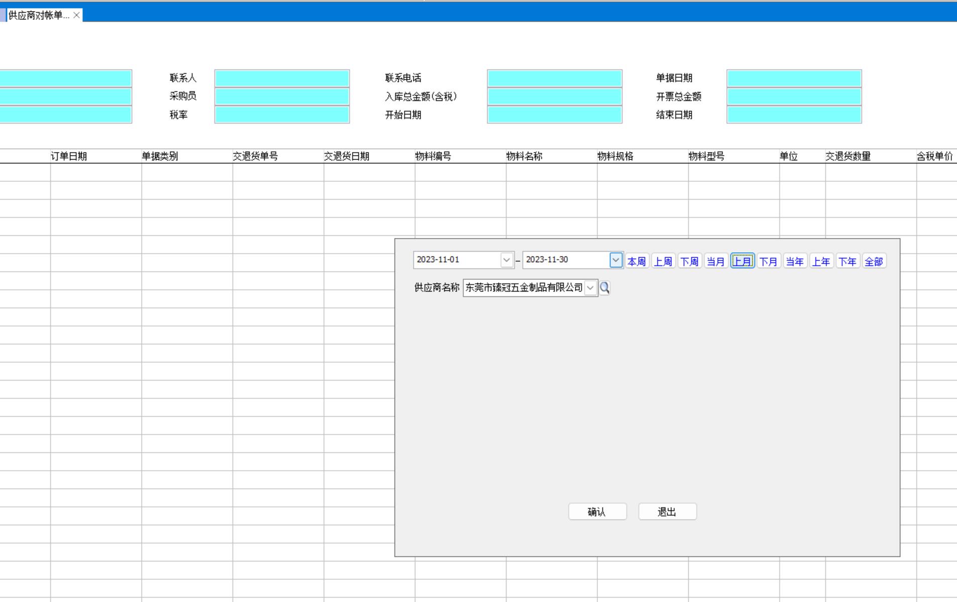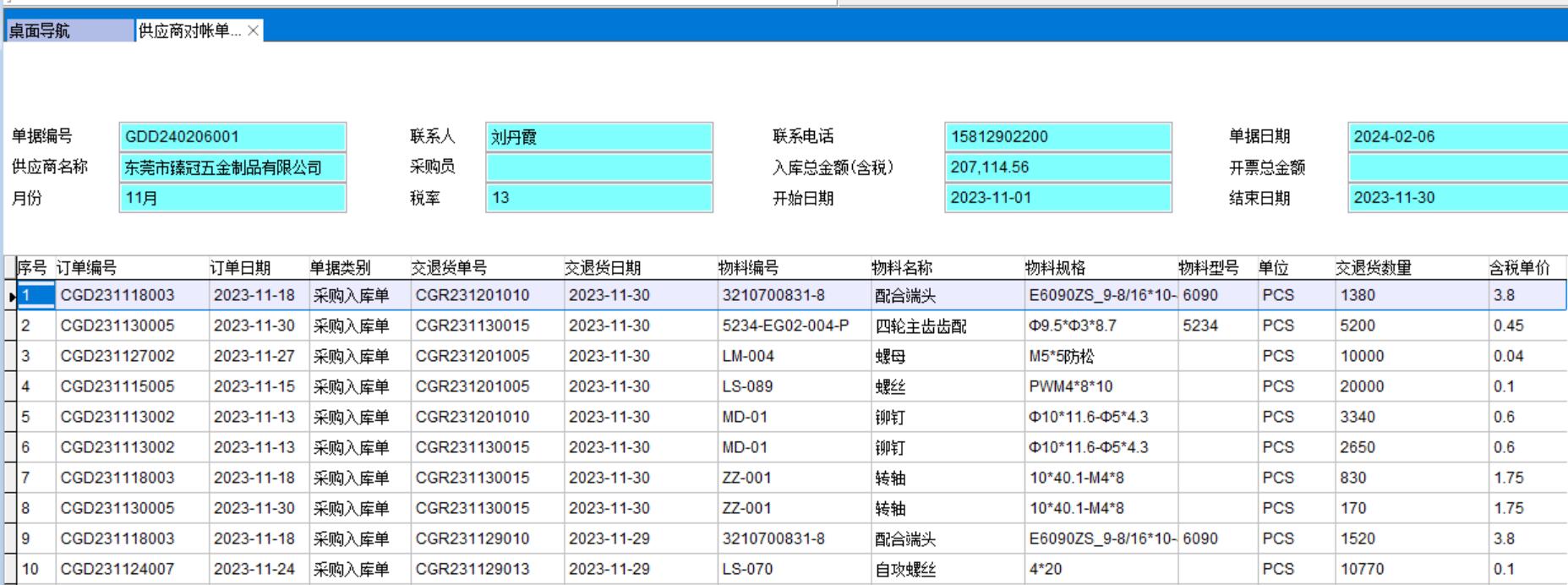 供應(yīng)商對(duì)帳單用于記錄該時(shí)間區(qū)間內(nèi)供應(yīng)商交退貨記錄