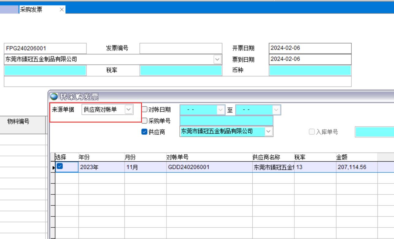 2、引用供應(yīng)商對(duì)帳單做采購(gòu)發(fā)票