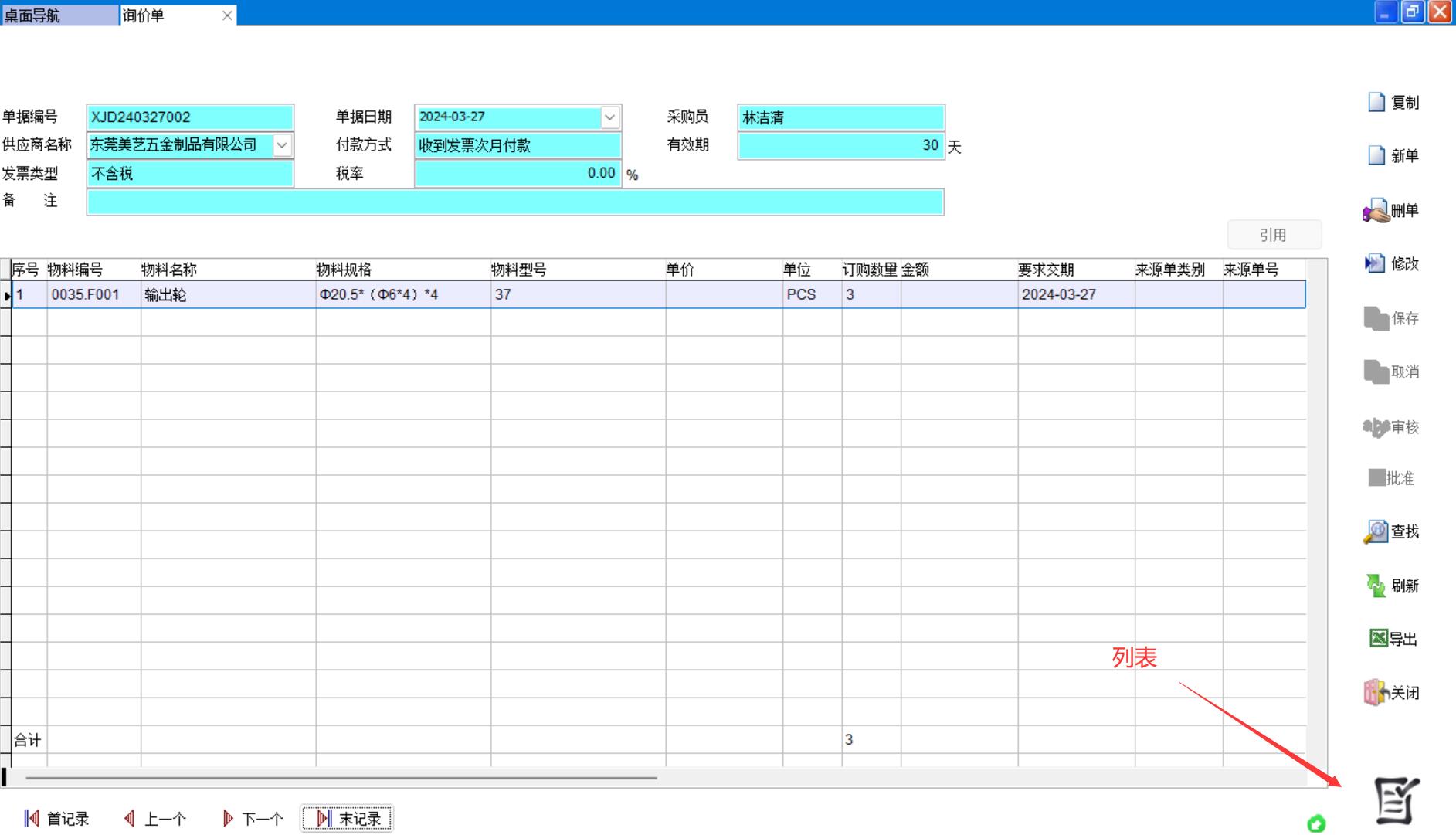 打開路徑:【主菜單】-【采購】-【詢價(jià)單】