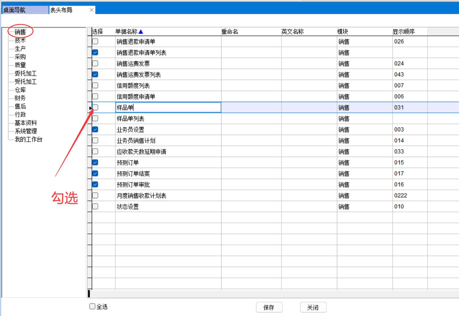 例如下圖的樣品單,默認(rèn)是隱藏的,勾選選擇,保存后重啟生效