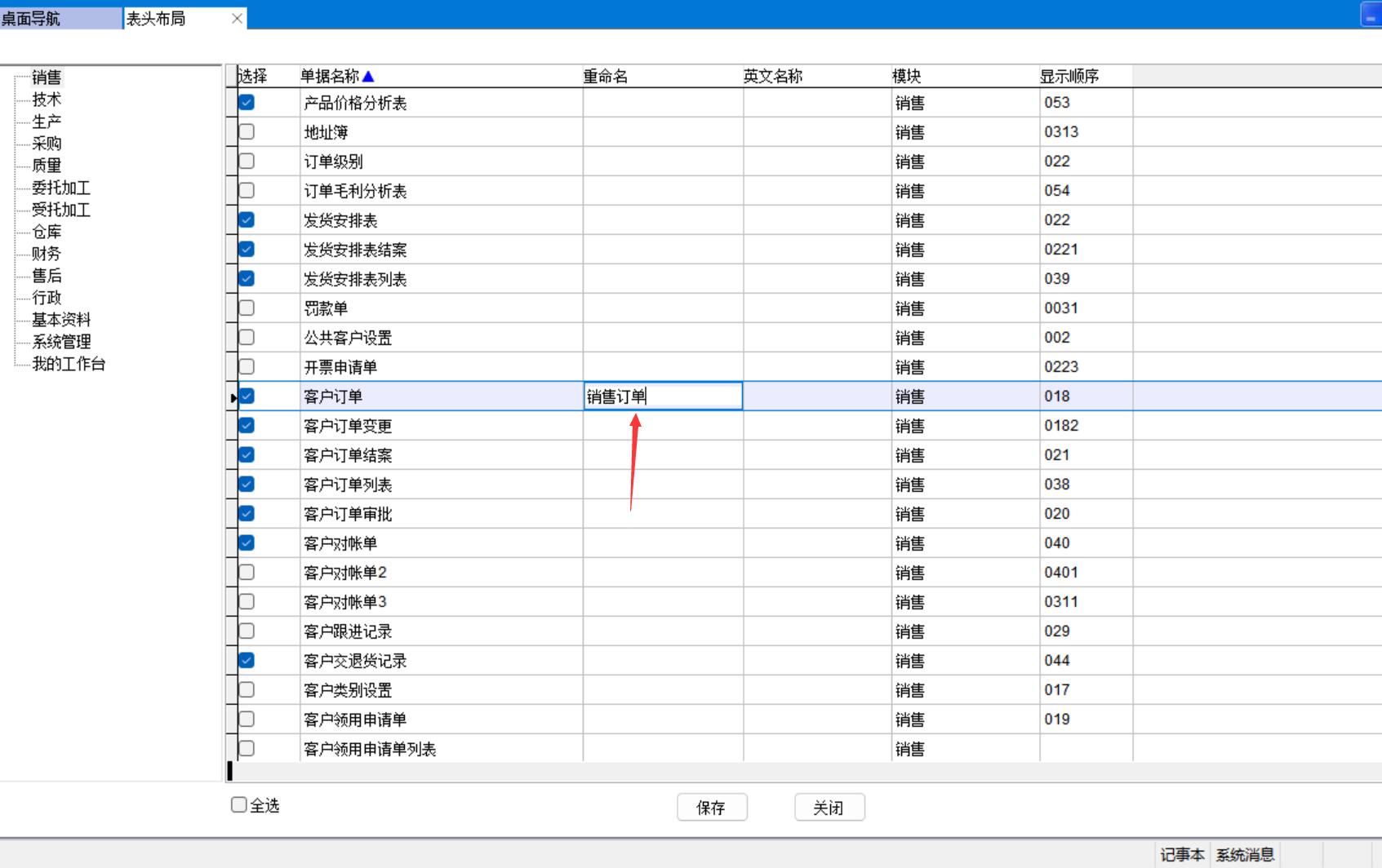 比如將系統(tǒng)默認(rèn)的客戶(hù)訂單改名為銷(xiāo)售訂單
