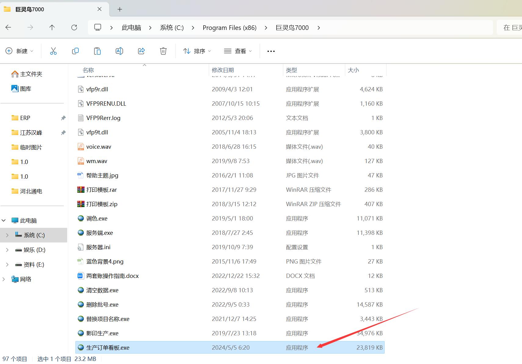 打開路徑:安裝目錄\生產(chǎn)訂單看板.exe