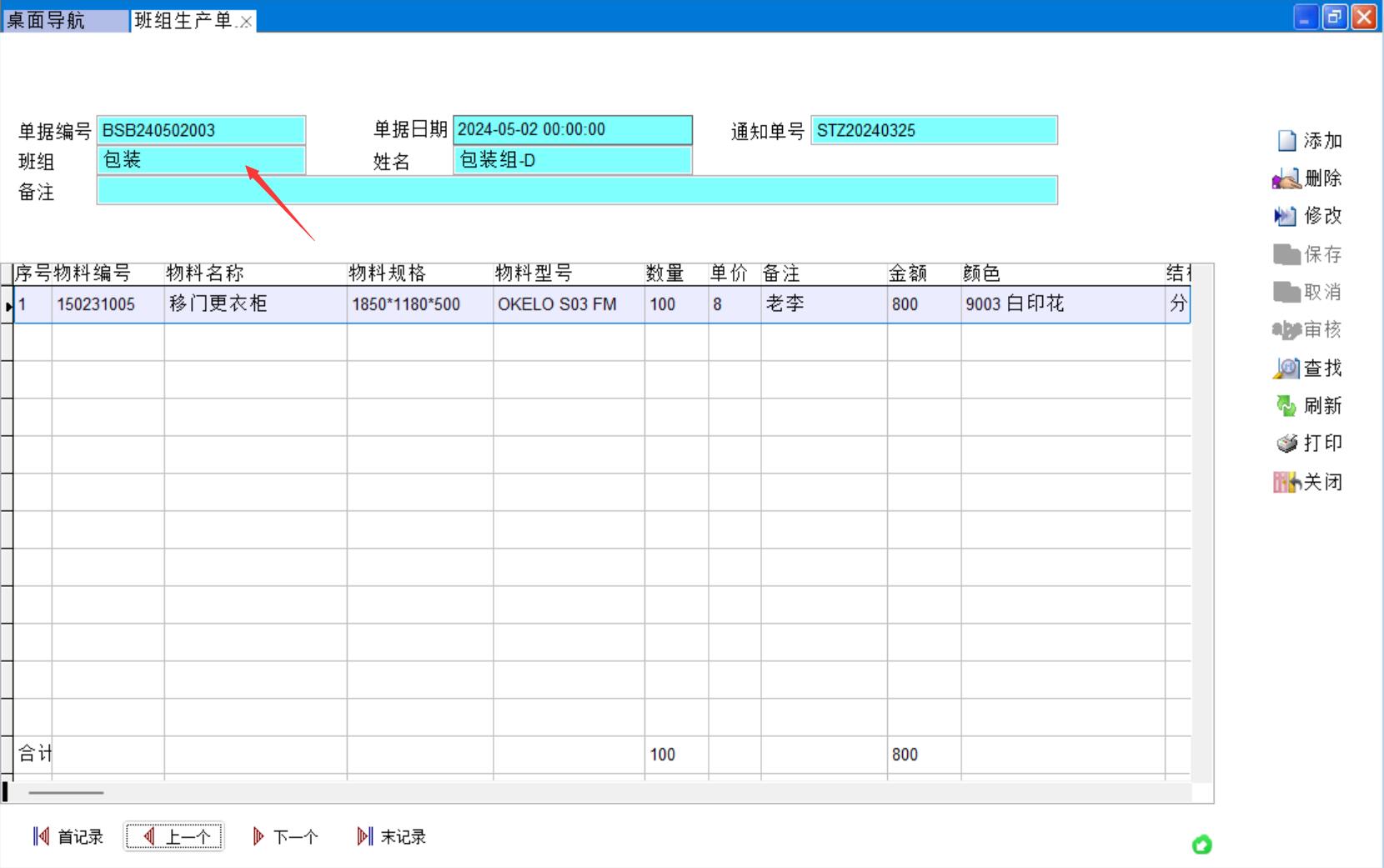 所有班組生產(chǎn)單2中的記錄,并且工序?yàn)榘b