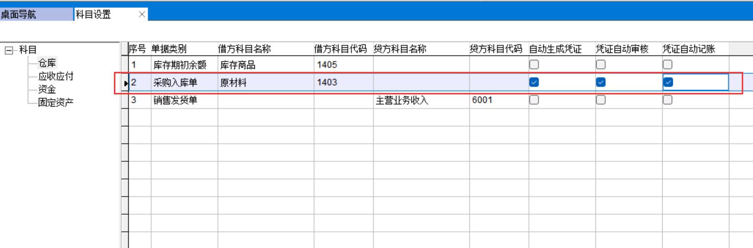 采購入庫單要能自動生成憑證需要正確的設置借貸科目。