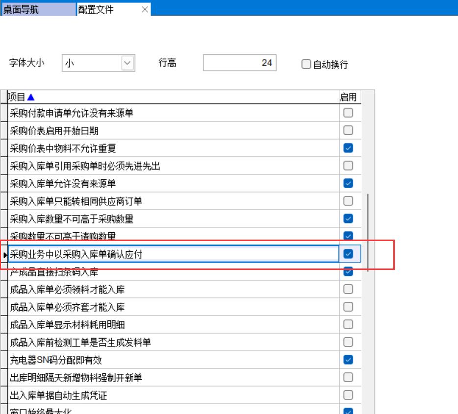 在配置文件中勾選采購業(yè)務中以采購入庫單確認應付