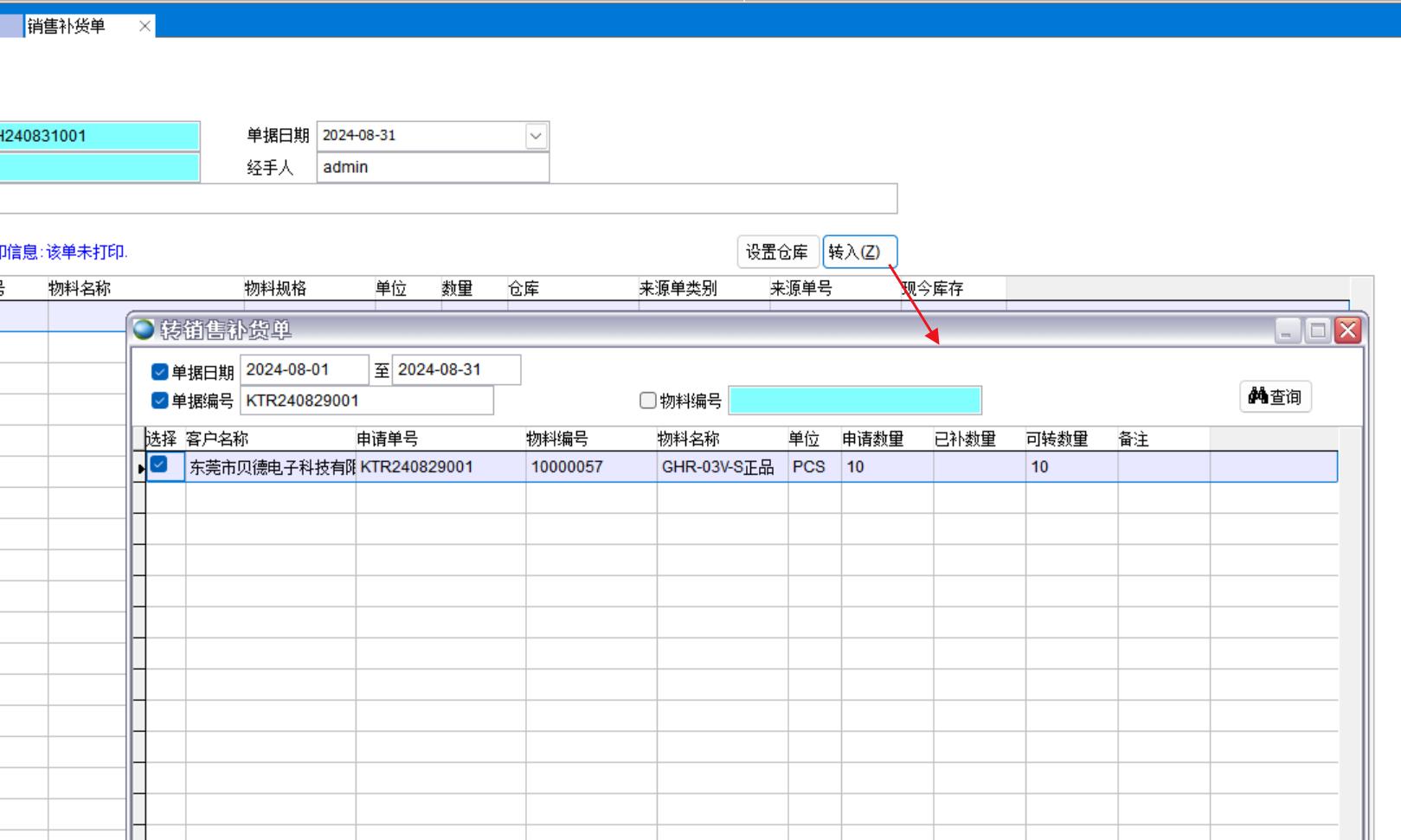 打開路徑:【主菜單】-【倉庫】-【出庫單】-【銷售補(bǔ)貨單】