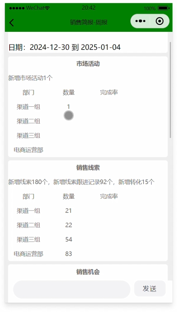 銷售周報(bào)包含銷售訂單金額、新增銷售線索數(shù)量、新增銷售機(jī)會(huì)數(shù)量,領(lǐng)導(dǎo)可以對(duì)周報(bào)進(jìn)行點(diǎn)評(píng)。