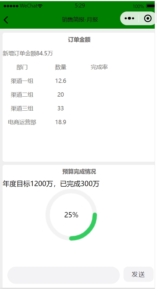 銷售月報(bào)內(nèi)容會(huì)更加全名,方便在月度會(huì)議上展示。顯示內(nèi)容包括銷售訂單金額、新增銷售線索數(shù)量、新增銷售機(jī)會(huì)數(shù)量、訂單top10客戶、銷售預(yù)算完成情況、銷冠數(shù)據(jù)等。