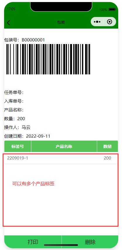 掃碼后能自動打印產(chǎn)品標簽,支持藍牙打印機