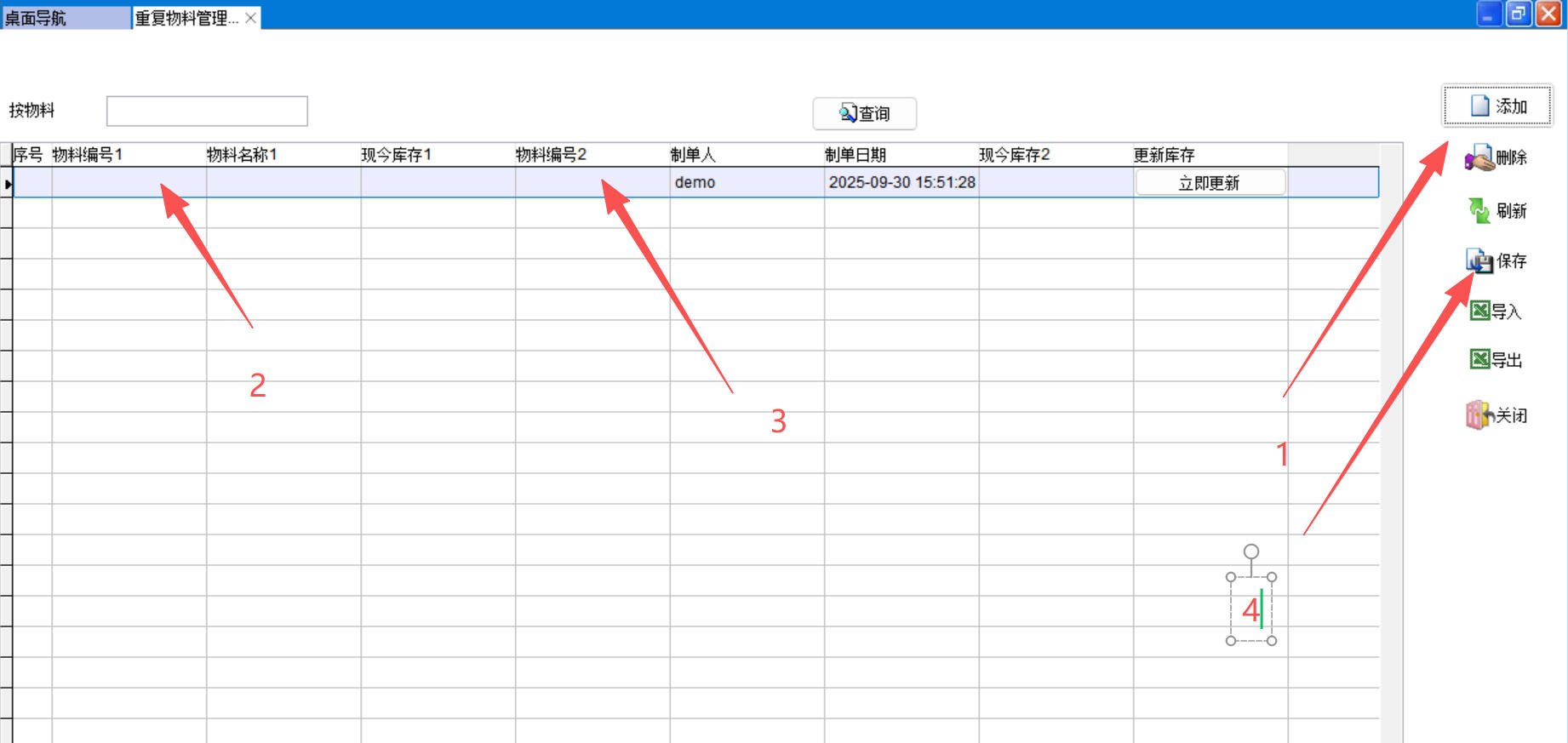 3、在物料編號(hào)2上直接輸入物料編號(hào)或雙擊選擇一個(gè)物料,物料編號(hào)2和物料編號(hào)1就是重復(fù)的物料