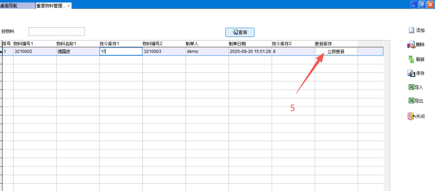 5、點(diǎn)在更新庫(kù)存上立即更新