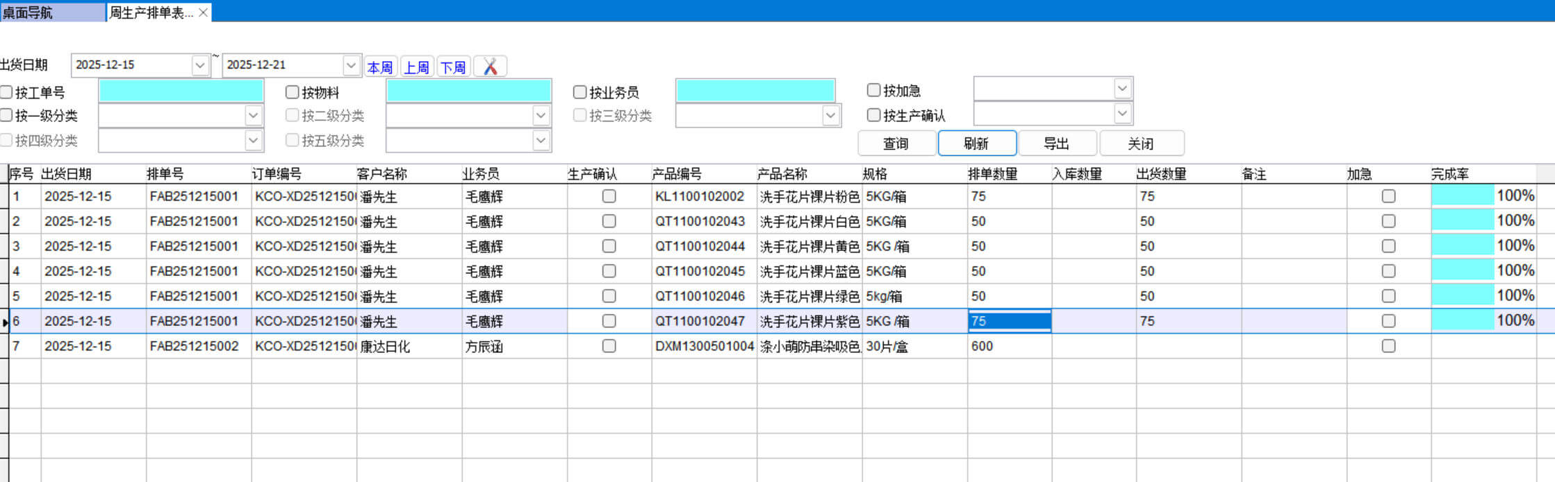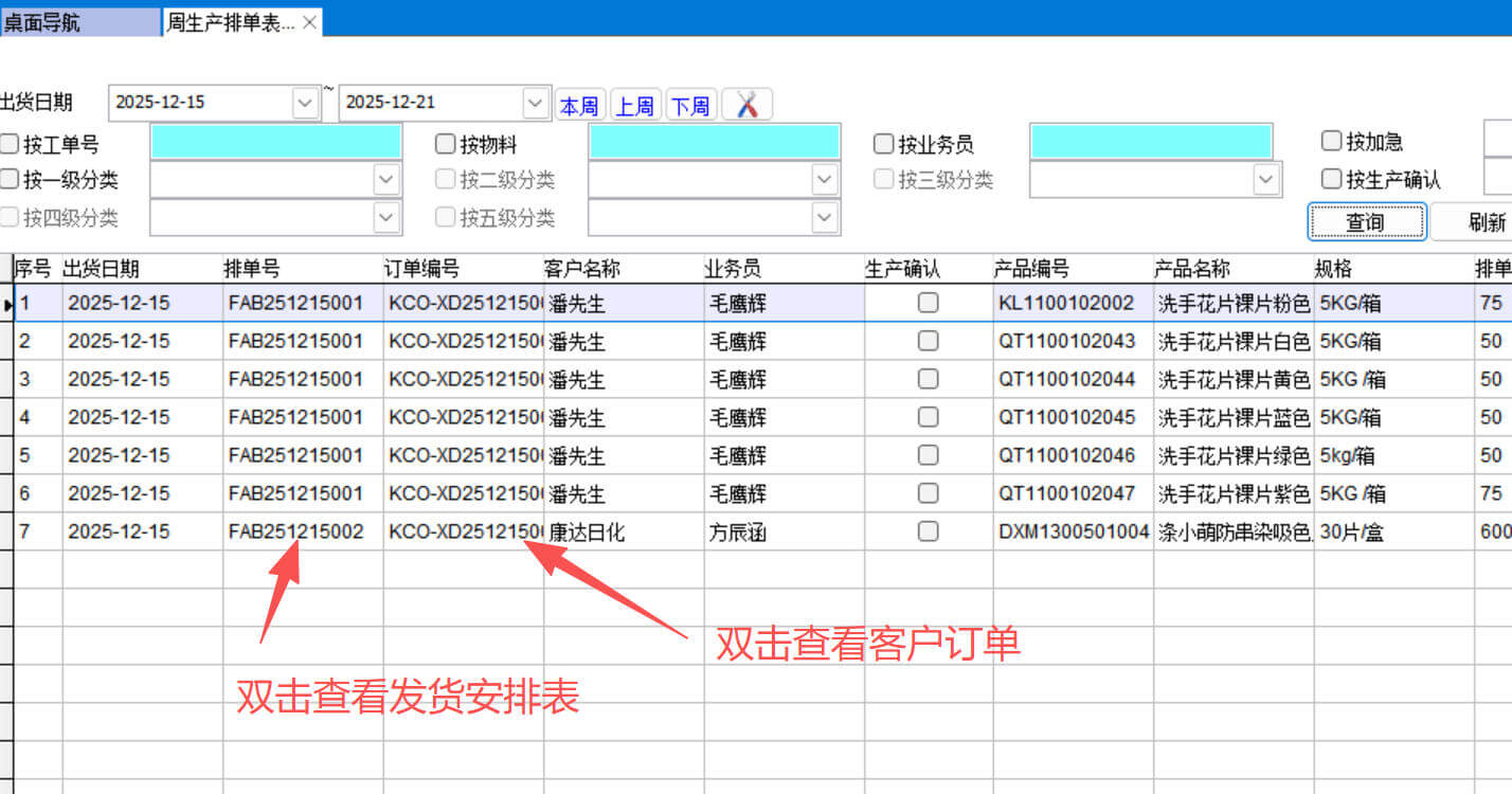 周生產(chǎn)排單表的起點(diǎn)是發(fā)貨安排表,只有做了發(fā)貨安排表才會(huì)在周生產(chǎn)排單表中顯示