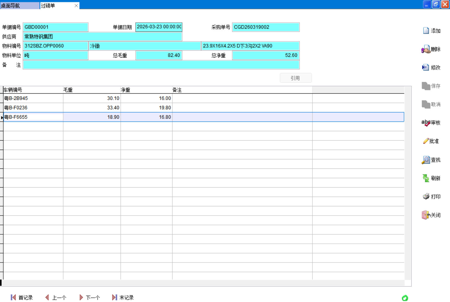 打開路徑:【主菜單】-【倉庫】-【過磅單】