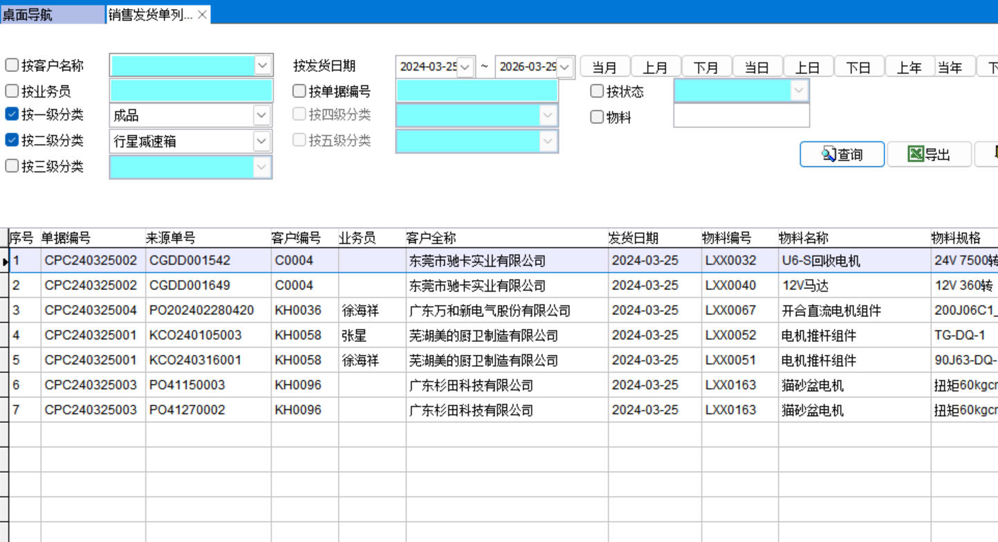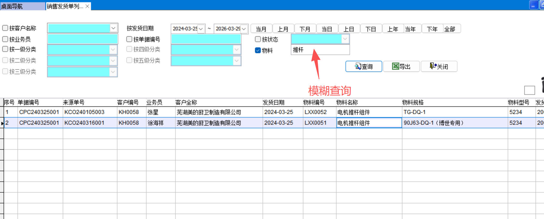 可以按客戶名稱、業(yè)務(wù)員、物料、物料分類、單據(jù)編號(hào)、狀態(tài)等條件查詢